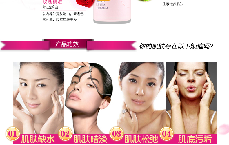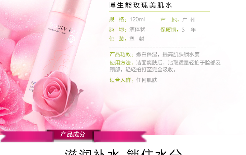 博生能玫瑰美肌水120ml 嫩白补水保湿爽肤水化妆品玫瑰水